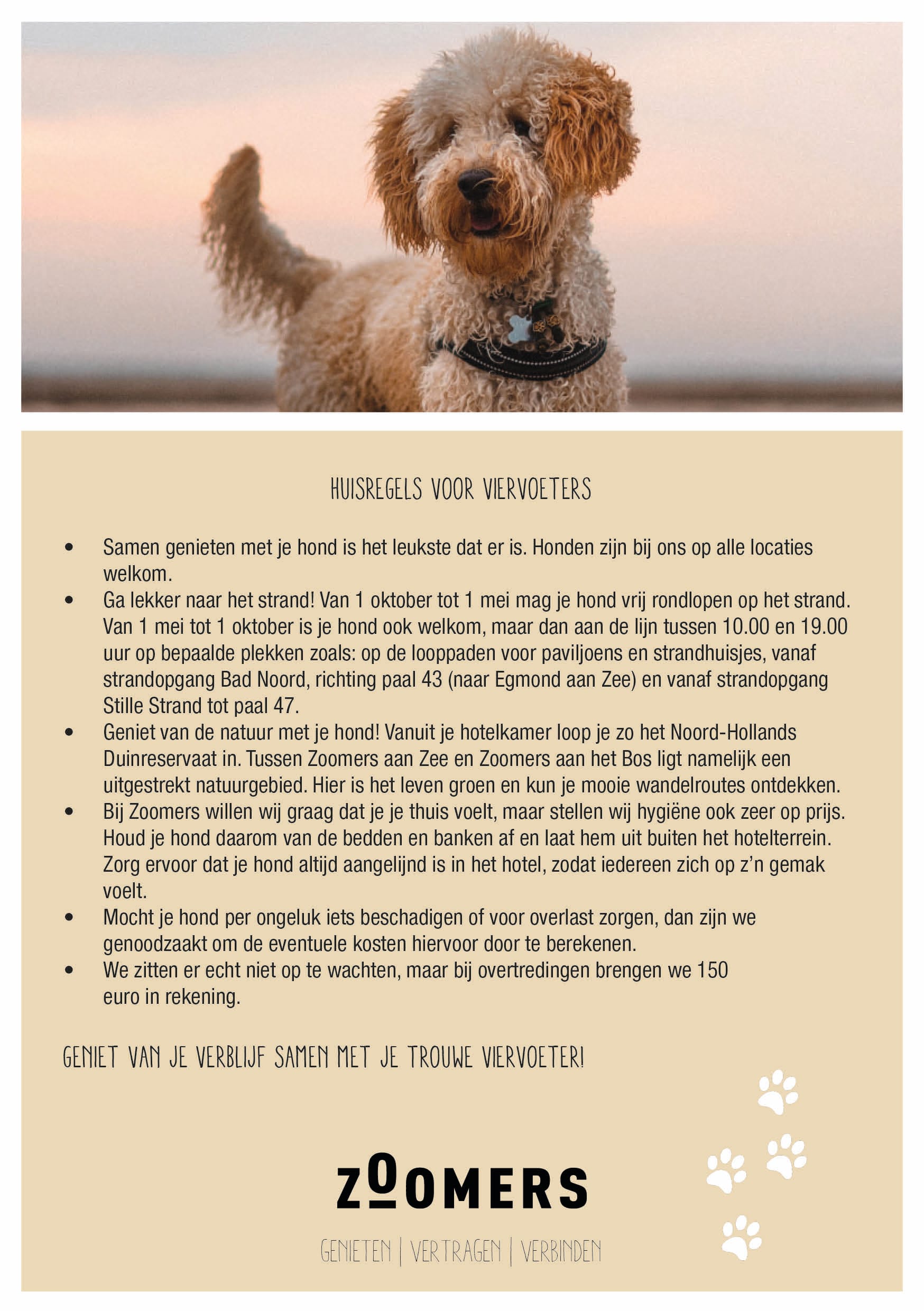 In ons boshotel zorgen we graag voor een fijne sfeer en goede hygiëne. Daarom hebben we een aantal huisregels opgesteld, zodat je zorgeloos kunt genieten van een verblijf samen met je trouwe viervoeter!